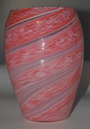 | Nazeing 'Barrel Vase' in salmon pink and white cloud 'Swirl' patter, 1930's |
